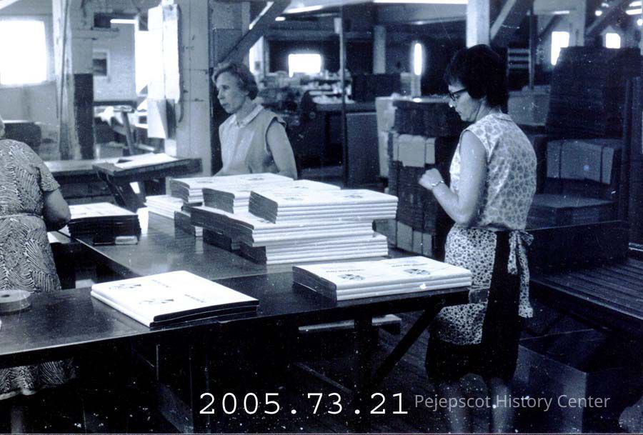A B/W photo of unidentified women working at the Bowdoin Mill. They appear to be packaging something.