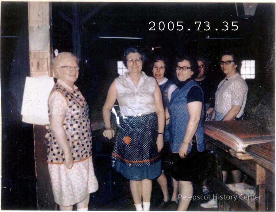 A color photo of unidentified women workers at the Bowdoin Mill.