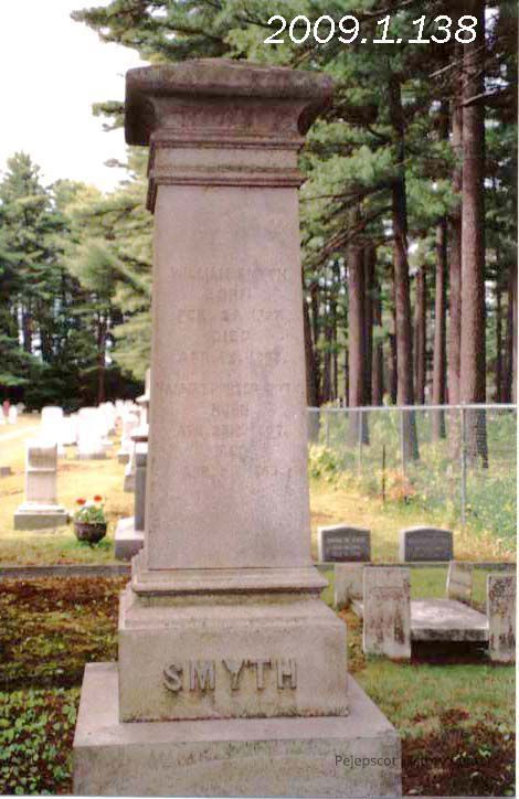 A color photograph of William Smyth's gravestone at Pine Grove Cemetery. 08/24/1989
