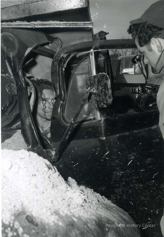 A B/W photograph the Charles DeLong accident. 2/27/1956.