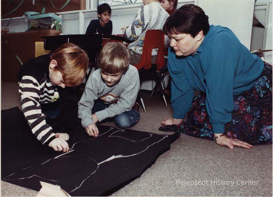 A color photographic view of 2 children playing and a woman watching. This photo was published 1/17/1990.