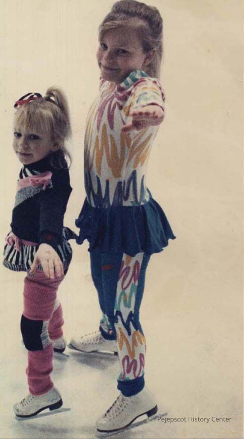 A color photographic view of 2 little girls figure skating. This photo was published 3/14/1990.