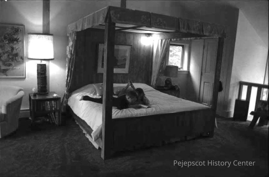 A B/W photographic view of a bedroom in Dr. John Skillings' home on Bailey's Island..Collection
