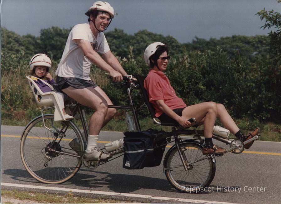 A photo view of a bicycle built for three. 8/18/1989.