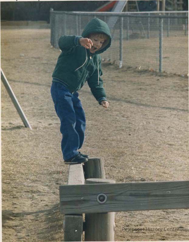 A photo view of a boy playing in a playground. 12/30/1988.