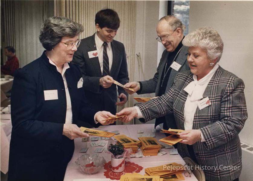 A color photographic view of Brunswick Church Council meeting. This photo was published 2/24/1989.