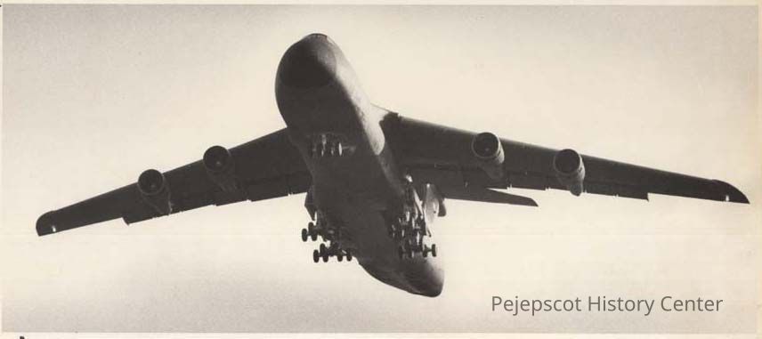 A B/W photographic view of a C-5A cargo plane at BNAS. This photo was published 1/9/1992.
