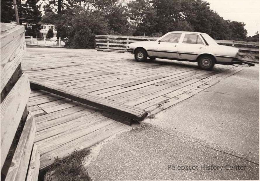 A B/W photographic view of a car passing over the railroad tracks on Federal Street.