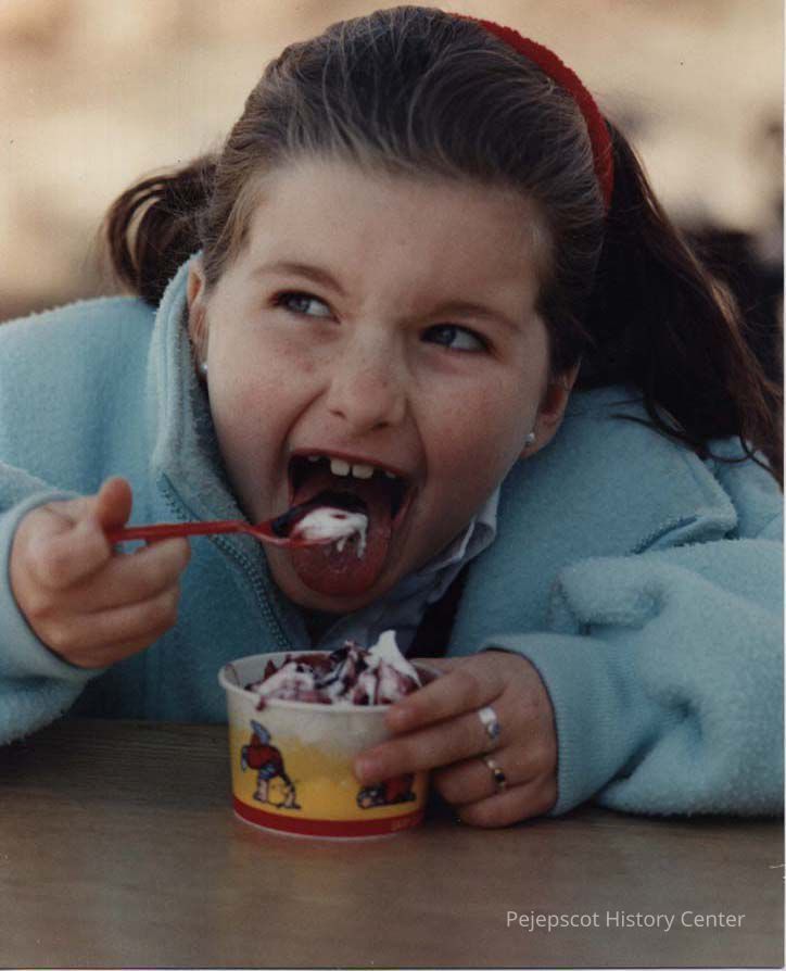 A color photographic view of a child eating ice cream. This photo was published 4/26/1989.