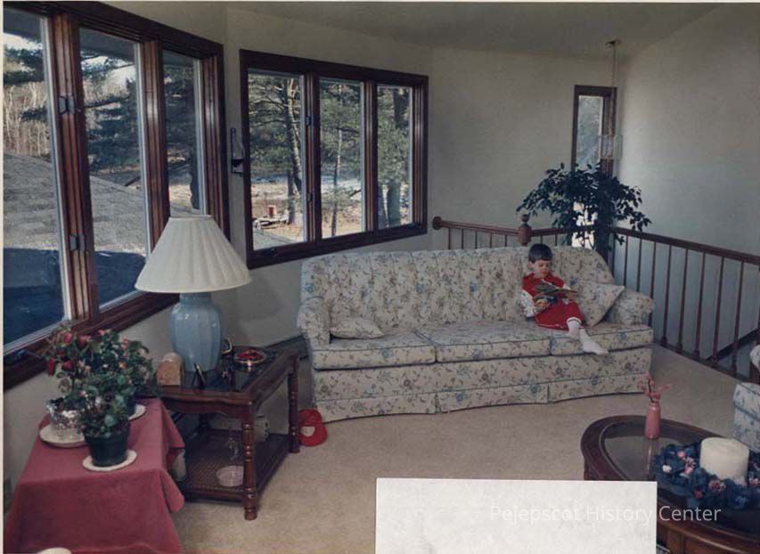 A color photographic view of a child sitting on a couch. This photo was published 1/16/1989.