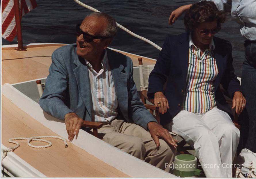 A color photographic view of a couple in a boat. This photo was published 6/20/1987.