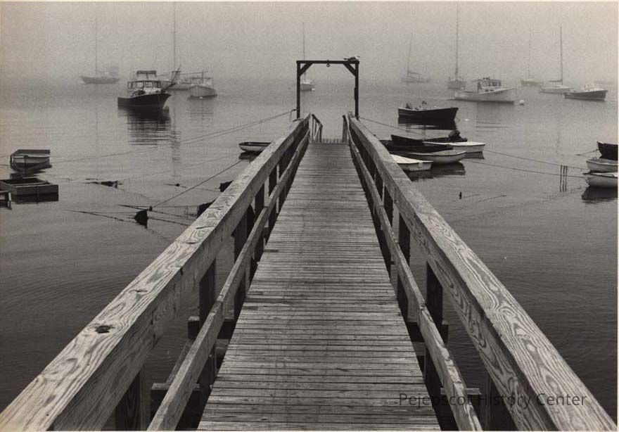 A B/W photographic view of a dock on a foggy day. This photo was published 9/11/1992.