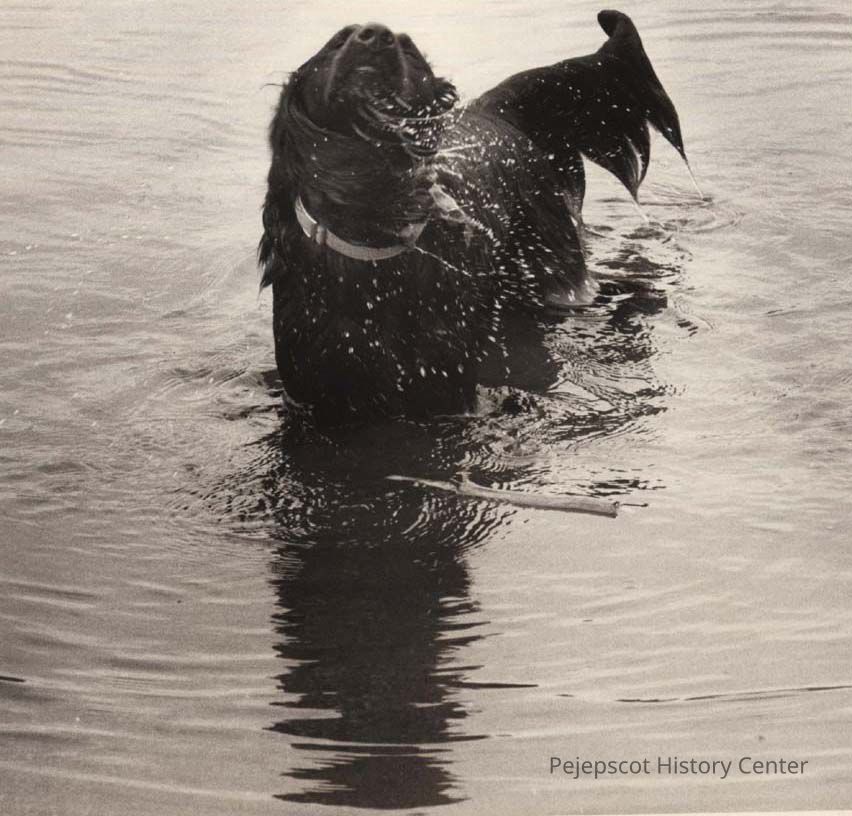 A photo view of a dog in the Androscoggin River. 5/14/1992.