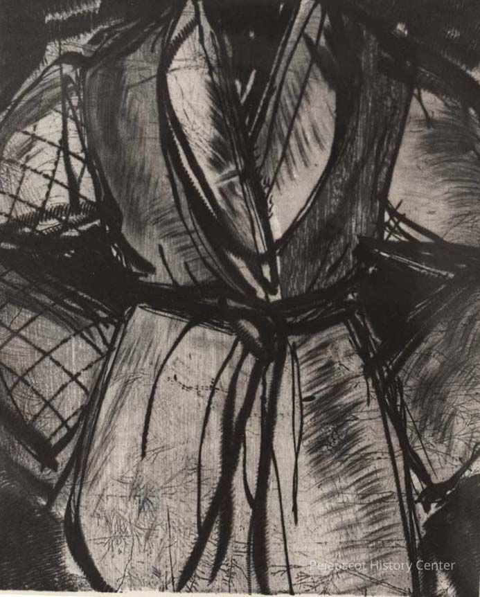 A B/W photographic view of a drawing of a woman's dress. 10/15/1992. This photo was published 10/15/1992.