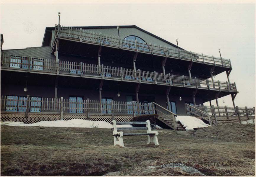A color photographic view of a fancy building on the coast. This photo was published 3/23/1990.