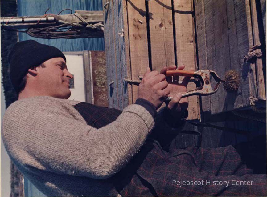 A photo view of a fisherman removing the edible portion of a sea urchin. 11/18/1988.