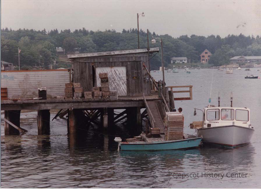 A color photographic view of a fisherman's wharf (probably Harpswell). This photo was published 9/6/1989.