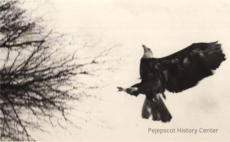 A B/W photographic view of a flying Bald Eagle. This photo was published 3/6/1992.