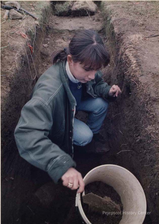 A photo view of a girl on an archeological dig. 11/19/1991.