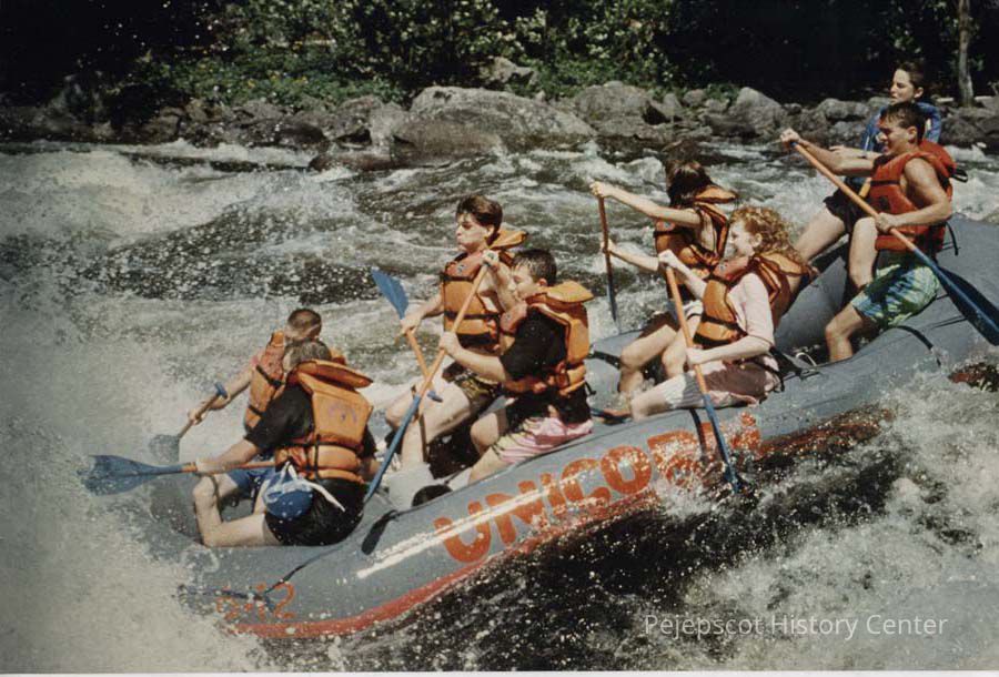 A photo view of a group white water rafting. 7/15/1991