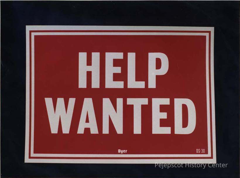 A color photographic view of a "Help Wanted" sign. This photo was published 4/3/1991.