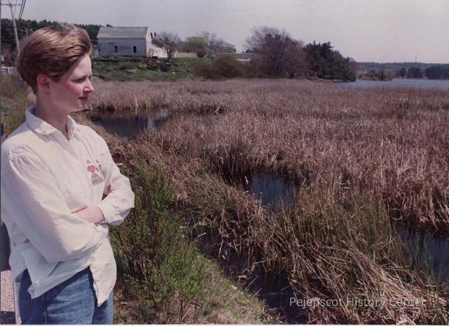 A photo view of a lady looking at a marsh. 5/17/1989.