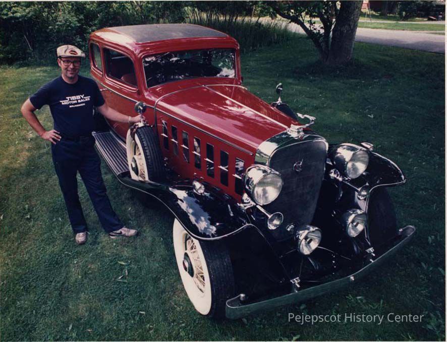 A color photographic view of a man and an antique car. This photo was published 7/5/1990.
