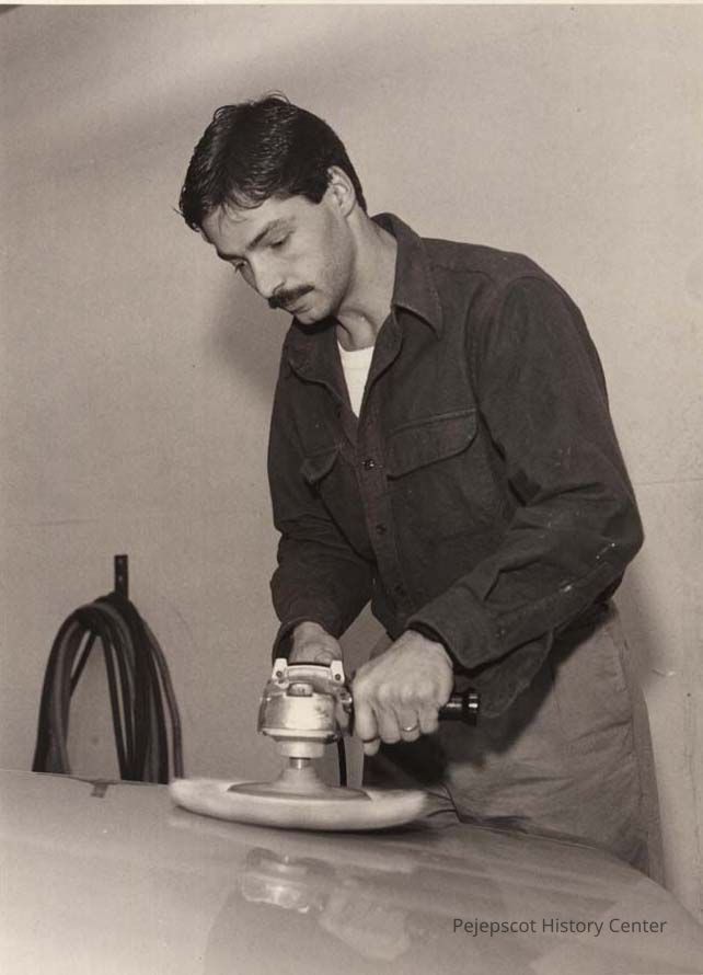 A B/W photographic view of a man buffing a car. This photo was published 11/25/1992.