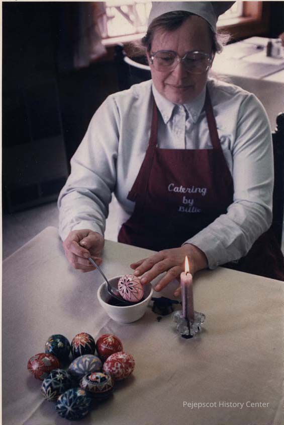A photo view of a man decorating Easter Eggs. 3/20/1989.