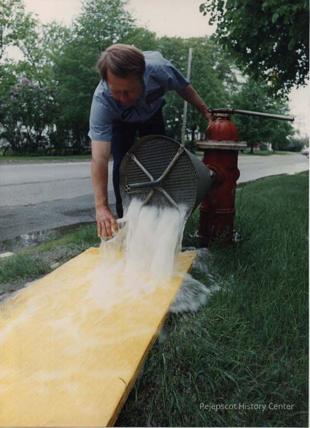 A photo view of a man getting a water sample. 6/13/1989.