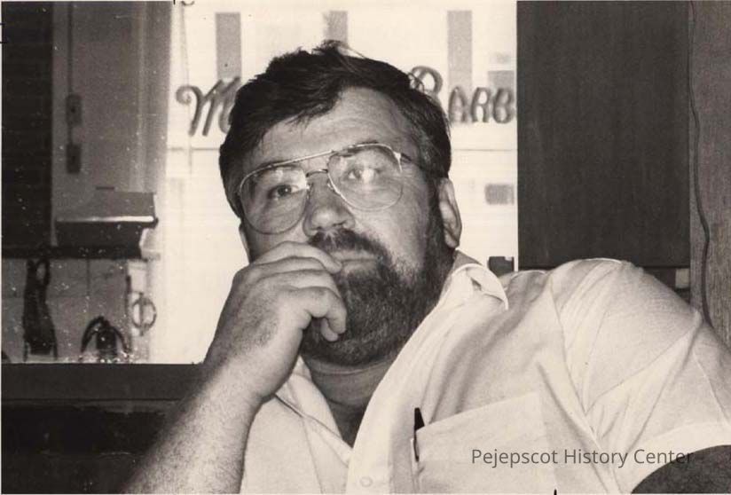 A B/W photographic view of a man in a barber shop. This photo was published 9/18/1992.