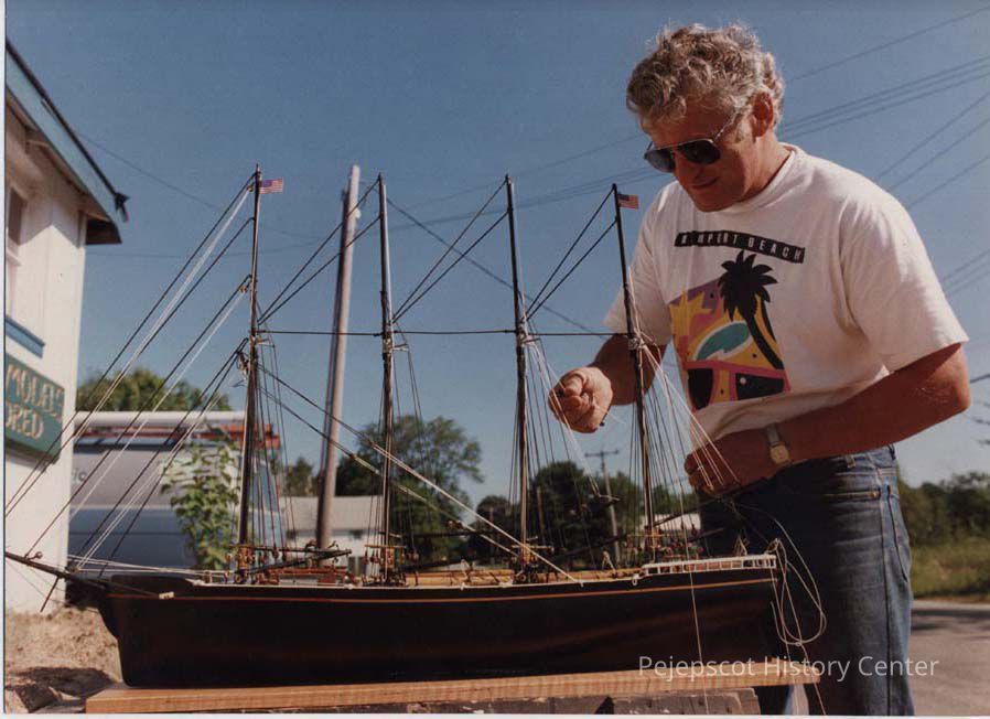 A photo view of a man working on a ship model. 8/12/1989.