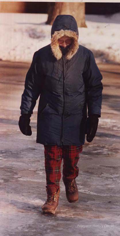 A photo view of a person all bundled up against the cold. 1/29/1987.