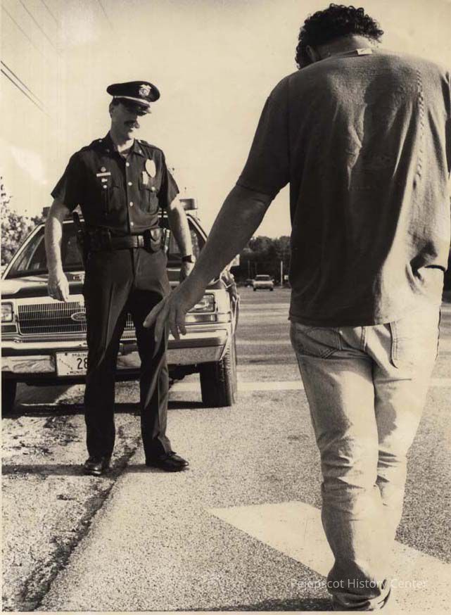 A photo view of a police officer giving an OUI test.. 6/10/1992.