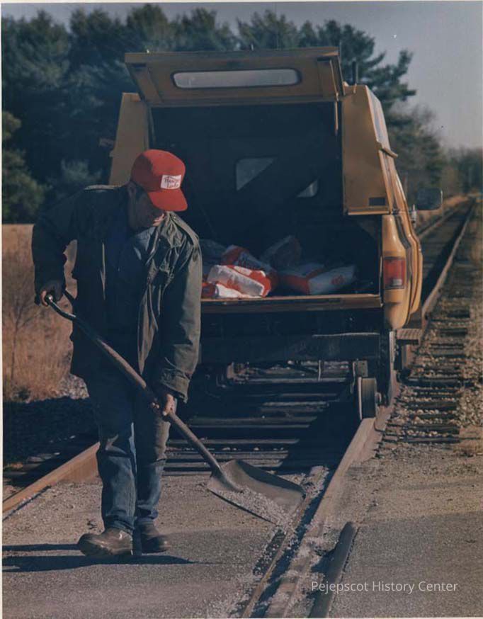 A color photographic view of a railroad worker. This photo was published 1/3/1989.
