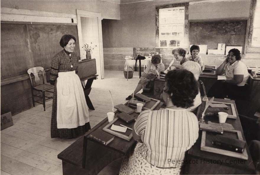 A photo view of a reenactor as a teacher at Growstown School. 8/27/1982.