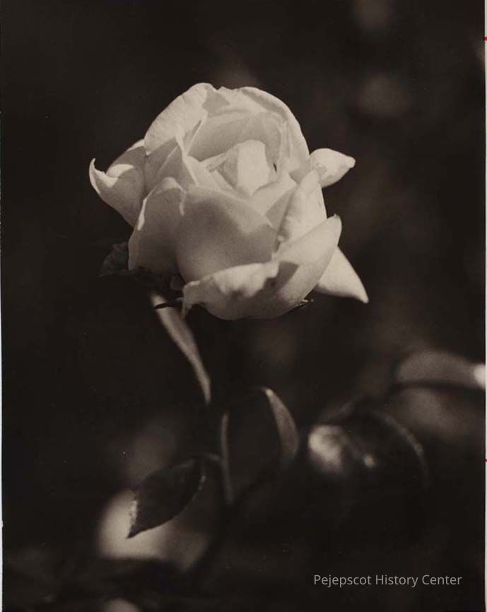 A B/W photographic view of a rose that was raised by Authur Clayton. This photo was published 7/11/1977.