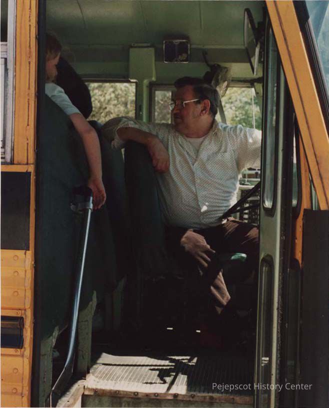 A color photographic view of a Brunswick School Bus driver. This photo was published 6/23/1987.
