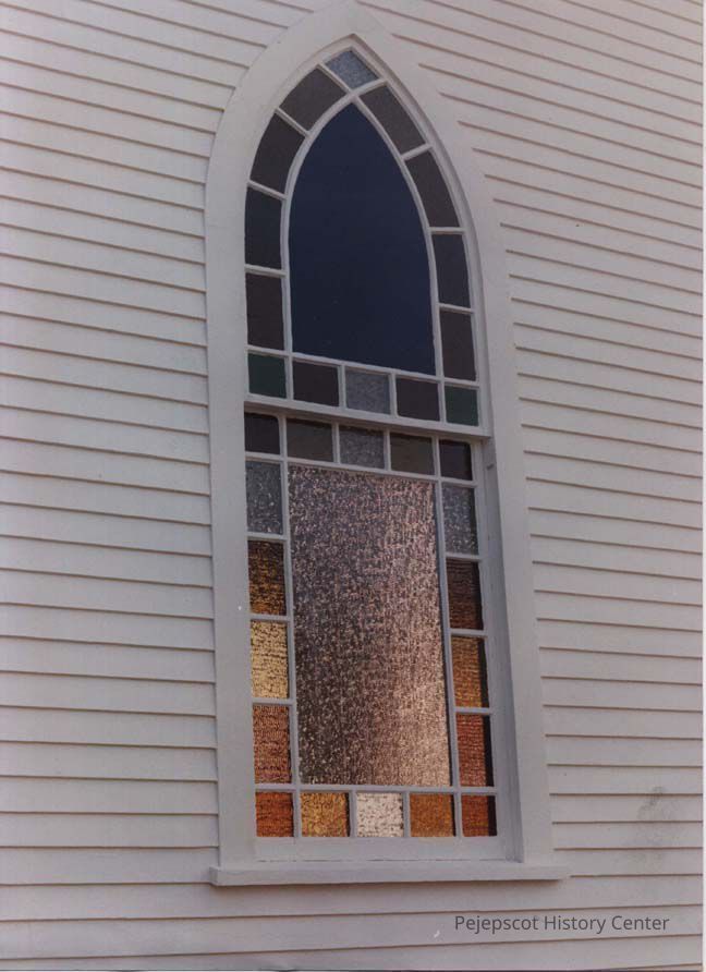 A color photographic view of a stained glass window in a church. This photo was published 9/22/1989.