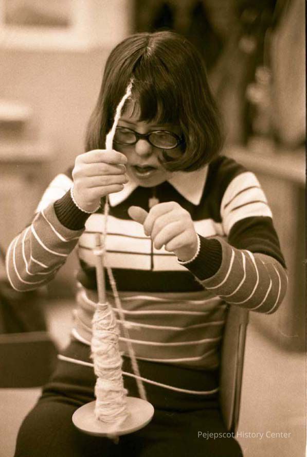 A photo view of a student at BHS spinning wool.10/11/1979.Entry/Object ID