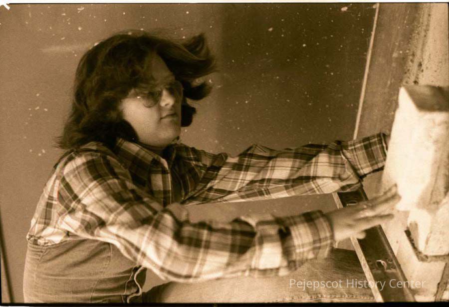 A B/W photographic view of a student at Vocational Region 10 School in Brunswick. 1979?Collection