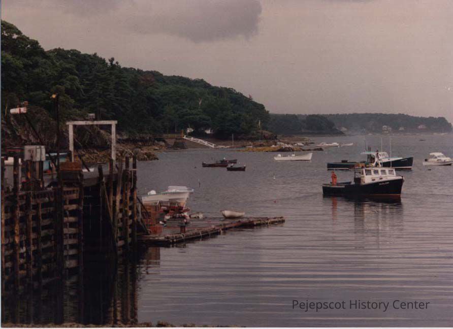 A color photographic view of a waterfront scene (in Harpswell?). This photo was published 7/31/1989.