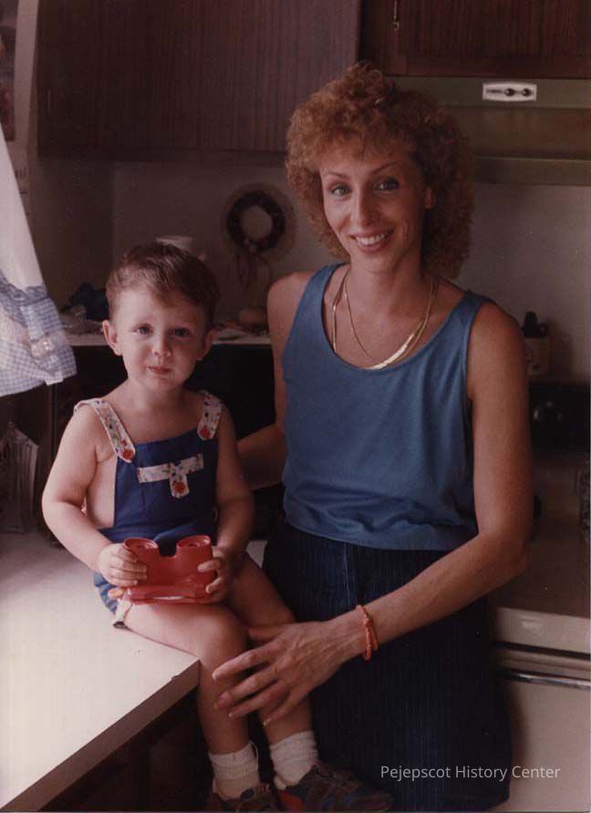 A color photographic view of a woman and a child.