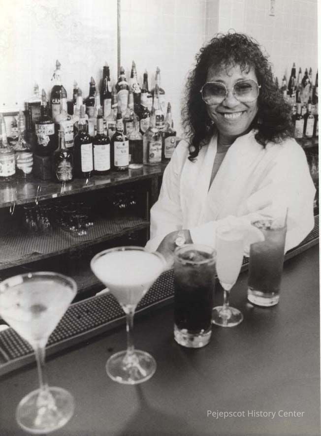 A B/W photographic view of a woman bar tender. This photo was published 9/28/1992.