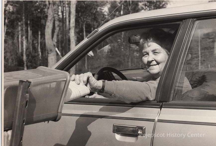A B/W photographic view of a woman delivering newspapers. This photo was published 10/9/1992.
