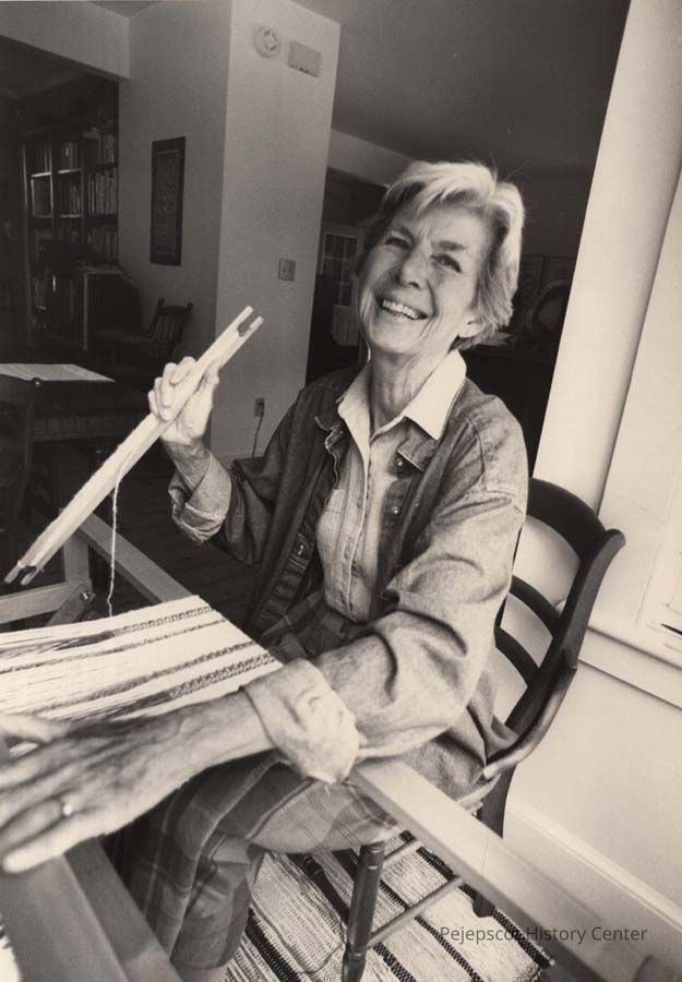 A B/W photographic view of a woman sitting at a loom. This photo was published 9/1/1992.