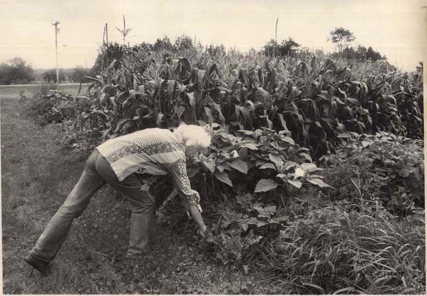 A B/W photographic view of a woman working in her garden. This photo was published 8/24/1992.
