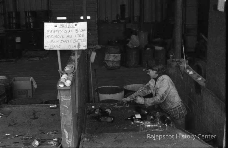 A photo view of a work women at Harpswell Recycling Center. 1/13/1989.Entry/Object ID