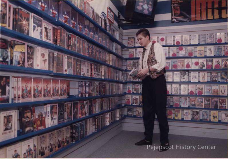 A color photographic view of a young man in a video Store. This photo was published 10/30/1991.
