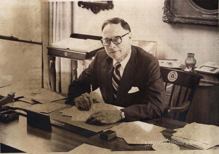 A B/W photographic view of A. LeRoy Greason, Bowdoin College president.